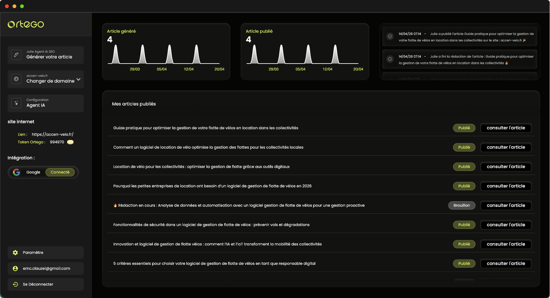 L’impact de vos contenus est mesuré grâce à Google. Ortego ne se base pas sur des estimations mais sur vos vraies données.